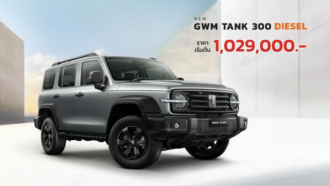 1. Special cash discount of up to 20,000 Baht*(For NEW GWM TANK 300 DIESEL all Trims exclude New GWM TANK 300 DIESEL Forest Phantom LIMITED EDITION), applicable for full cash payment and leasing, Interest rate for 2.15%** for down payment 25% installment up to 48 months. The conditions as specified by the Bank and the participating financial institutions