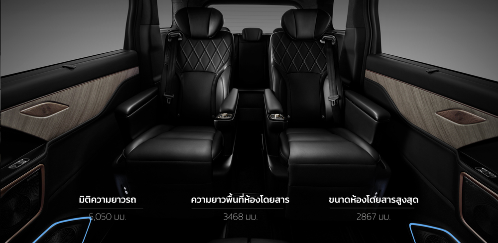 • Acoustic Dual-Layer Glass: กระจกกันเสียงแบบ 2 ชั้น ถูกติดตั้งรอบคันเพื่อทำหน้าที่ตัดเสียงรบกวนจากลมและเครื่องยนต์ ทำให้ ห้องโดยสารเงียบ สงบ เหมาะสำหรับการคุยงานสำคัญหรือการนอนหลับพักผ่อน