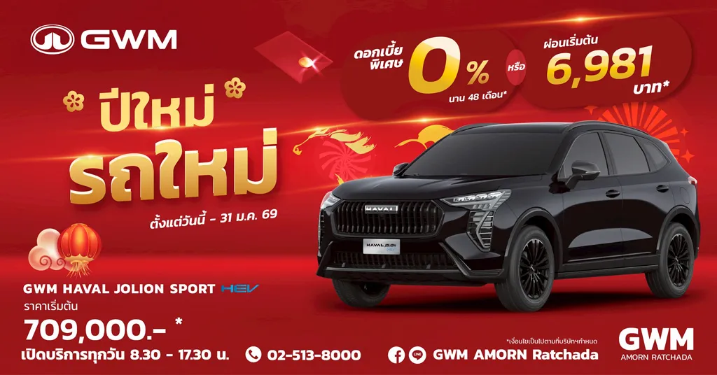 สำหรับคนที่สนใจรถยนต์ HAVAL JOLION Hybrid ไฮบริดเอสยูวีมีฟังก์ชันสุดล้ำแห่งอนาคต สามารถเข้ามาดูแคมเปญพิเศษสำหรับ Haval Jolion Hybrid ได้ที่ GWM Amorn Ratchada และสามารถจอง HAVAL JOLION Hybrid ได้แล้ววันนี้พร้อมโปรโมชันสุดพิเศษมากมาย