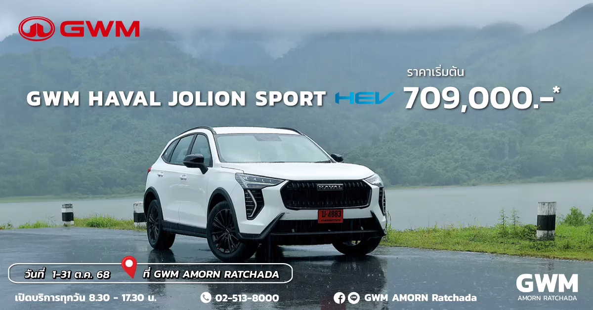 สำหรับคนที่สนใจรถยนต์ HAVAL JOLION Hybrid ไฮบริดเอสยูวีมีฟังก์ชันสุดล้ำแห่งอนาคต สามารถเข้ามาดูแคมเปญพิเศษสำหรับ Haval Jolion Hybrid ได้ที่ GWM Amorn Ratchada และสามารถจอง HAVAL JOLION Hybrid ได้แล้ววันนี้พร้อมโปรโมชันสุดพิเศษมากมาย