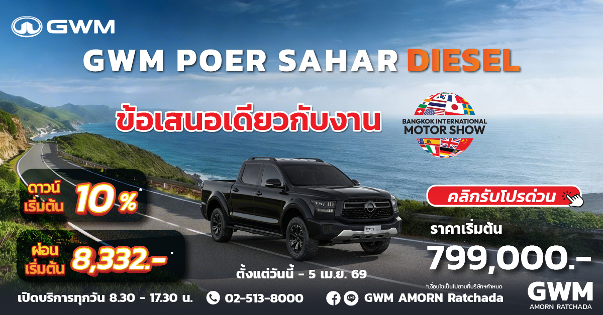 NEW GWM POER SAHAR 2.4 DIESEL กระบะพรีเมียมสมรรถนะสูง เปิดตัวพร้อม 3 รุ่นย่อย ครบทั้งแรง ความหรู และฟีเจอร์จัดเต็ม