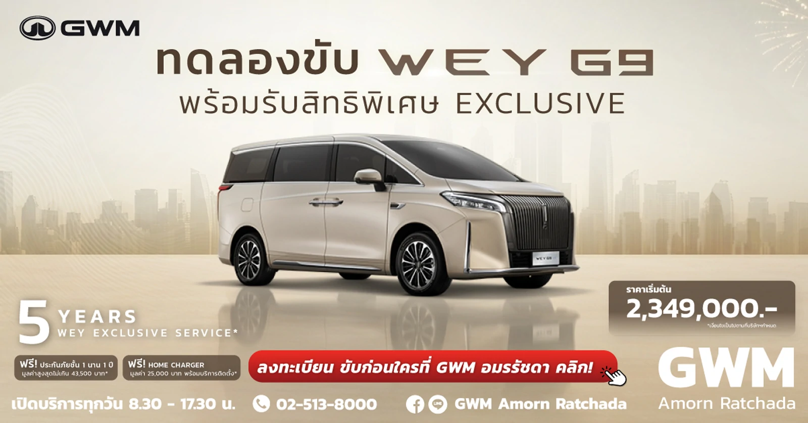 GWM WEY G9 Hi4 เวอร์ชันไทย MPV 7 ที่นั่ง ประตูสไลด์ไฟฟ้า