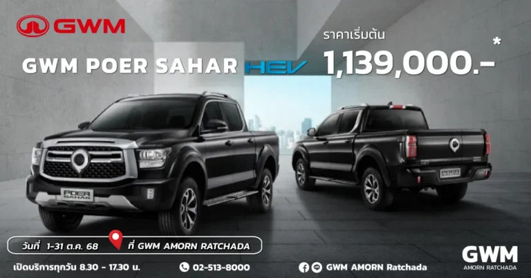 ข้อเสนอประจำเดือนตุลาคม 2568 เพื่อซื้อ NEW GWM POER SAHAR SINGLE CAB รวมมูลค่าสูงสุดกว่า 4,000 บาท สำหรับรุ่น SINGLE CAB
